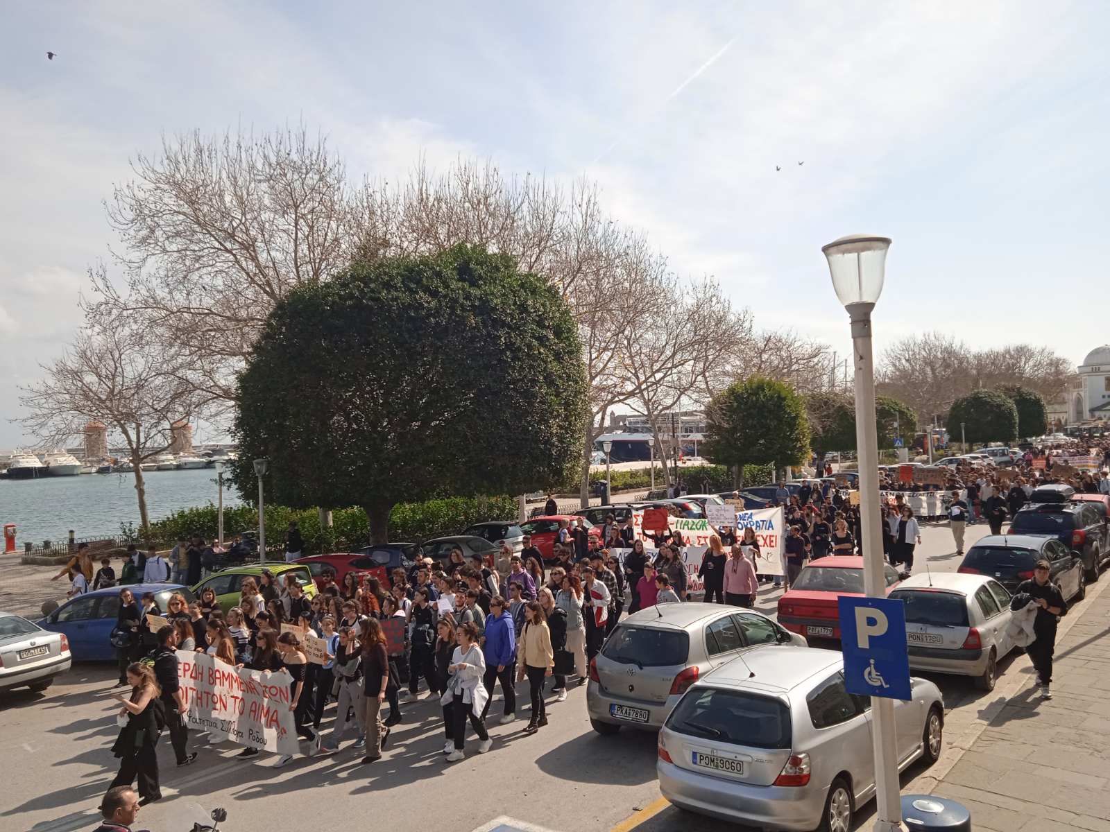 Η απεργιακή συγκέντρωση ξεκίνησε στις 10.00 π.μ. στο κτίριο του εργατικού κέντρου Ρόδου με ομιλίες από εκπροσώπους όλων των σωματείων και ακολούθησε μεγάλη πορεία.