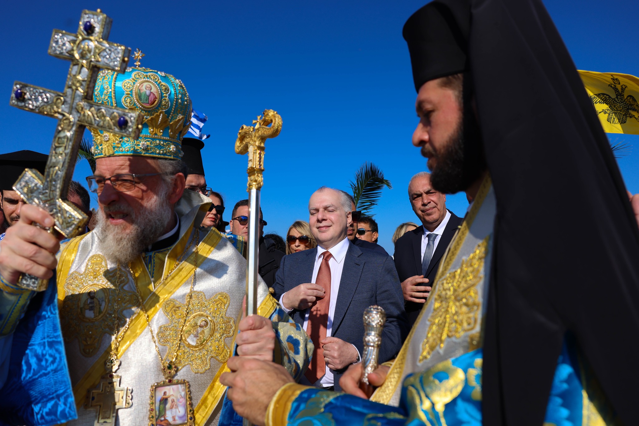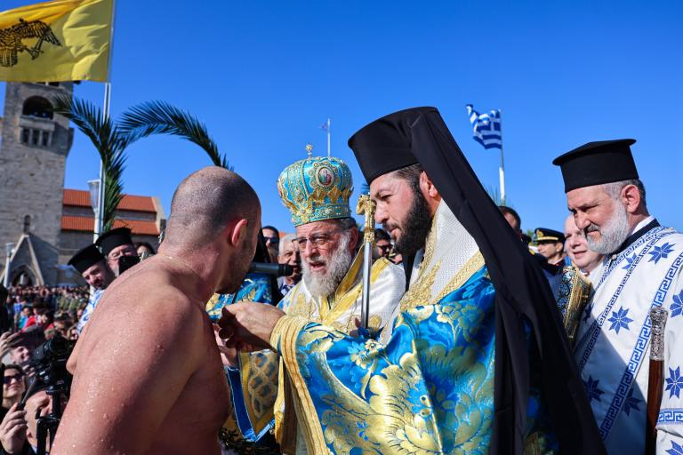 Με λαμπρότητα εορτάστηκαν και φέτος τα Θεοφάνια στη Ρόδο με επίκεντρο τον αγιασμό των Υδάτων στον λιμένα του Μανδρακίου όπου χοροστάτησε ο Μητροπολίτης Ρόδου Κύριλλος.Απο νωρίς πλήθος κόσμου κατέκλυσε το χώρο πέριξ του λιμένα όπου έπεσαν 26 κολυμβητές,ανάμεσα τους τρεις γυναίκες για να πιάσουν το Σταυρό.Τυχερός,ακόμη μια χρονιά ο Βαγγέλης Καρυοφυλλάκης.