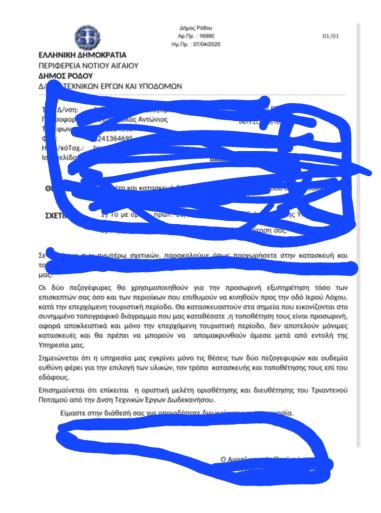Με πρόσφατο έγγραφο της η Διεύθυνση Τεχνικών Υπηρεσιών του δήμου Ρόδου δίνει άδεια για την τοποθέτηση δυο πεζογέφυρων, εκεί που είχε γκρεμιστεί η γέφυρα κατά τη διάρκεια της κακοκαιρίας bora με κοινή απόφαση της Πολιτικής Προστασίας της Περιφέρειας και της Πολιττικής Προστασίας του δήμου Ρόδου. Η απόφαση της διεύθυνσης τεχνικών υπηρεσιών είναι στη διάθεση του Verera και όπως αναφέρει " η απόφαση είναι προσωρινή" και για την οριστική παραπέμπει στην Διεύθυνση Τεχνικών Υπηρεσιών Δωδεκανήσου! Τα σχόλια και οι κρίσεις για αυτή την απόφαση του δήμου Ρόδου που για την κατεδάφιση της πεζογέφυρας πανηγύρισαν σε εσάς....Μπορεί να μας πουν οτι τους απειλούμε!!! Μάλλον το ανίθετο συμβαίνει...