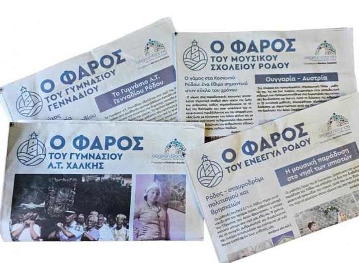 «Φάρος» το όνομα της σχολικής εφημερίδας που συνέταξαν και επιμελήθηκαν, σε συνεργασία με τους εκπαιδευτικούς τους, οι μαθητές του Γυμνασίου Λ.Τ. Γενναδίου, του Γυμνασίου Λ.Τ. Χάλκης, του Μουσικού Σχολείου Ρόδου και του Ενιαίου Ειδικού Επαγγελματικού Γυμνασίου-Λυκείου Ρόδου (ΕΝΕΕΓΥΛ) για να τυπώσει στη συνέχεια σε μεγάλο αριθμό αντιτύπων η Περιφέρεια Νοτίου Αιγαίου. Βασική θεματολογία της εφημερίδας η παράδοση, ο πολιτισμός και η ιστορία του τόπου αλλά και σύγχρονα ζητήματα που απασχολούν τους μαθητές, όπως η προστασία του περιβάλλοντος και η τεχνητή νοημοσύνη.