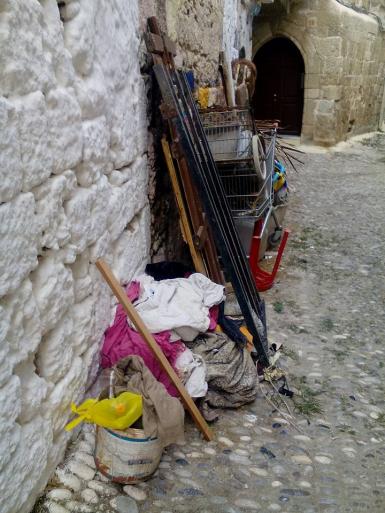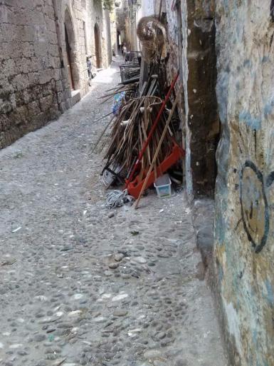 Ναι , η έκπληξη μαζί και η αγανάκτηση εχουν όνομα και ταυτότητα . Οι εικόνες αυτές λοιπόν βρίσκονται δυστυχώς στο χαρακτηρισμένο απο την Unesko "Μνημείο Παγκόσμιας Πολιτιστικής Κληρονομιάς "απο το 1988 ,την Μεσαιωνική πόλη της Ρόδου ! Μια ανάσα απο τον κεντρικότερο και πιο περπατημένο δρόμο της Π.Πόλης την Σωκράτους ,στη οδό Τιμοκρέοντος !