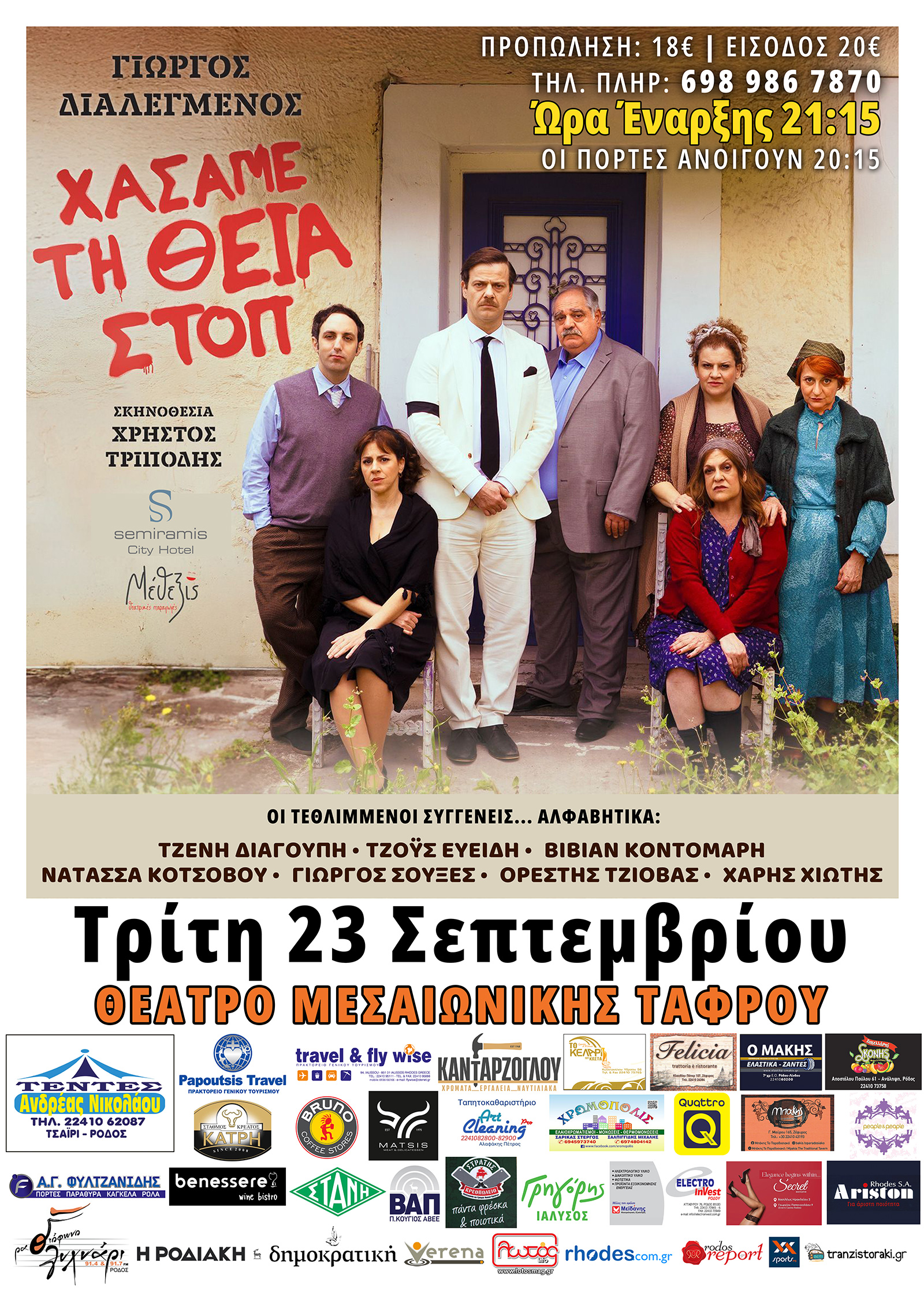 Ξεκίνησε η προπώληση για την θεατρική παράσταση "ΧΑΣΑΜΕ ΤΗ ΘΕΙΑ ΣΤΟΠ" που θα πραγματοποιηθεί την Τρίτη 23 Σεπτεμβρίου στο Θέατρο της Μεσαιωνικής Τάφρου !!