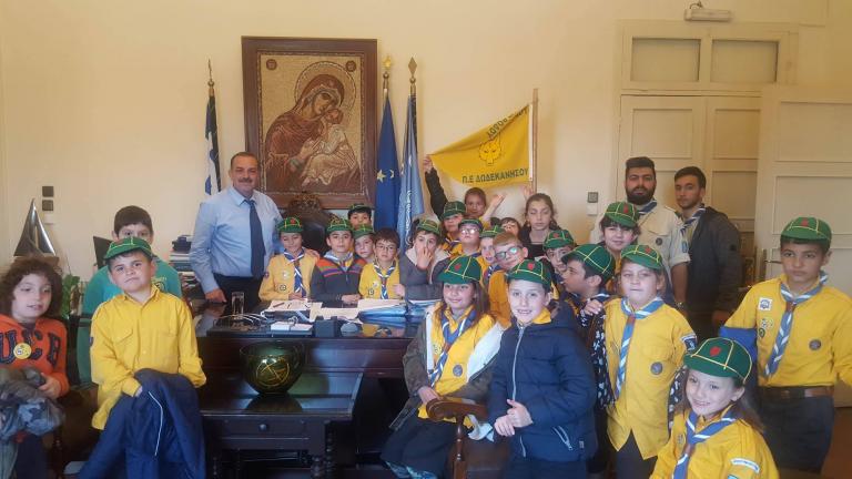 Δελτίο Τύπου-Θέμα: Οι Δωδεκανήσιοι πρόσκοποι στο Δήμαρχο Ρόδου -Εθιμοτυπική επίσκεψη στον Δήμαρχο Ρόδου κο Φώτη Χατζηδιάκο, πραγματοποίησε το Σάββατο 4 Μαρτίου του 2017, ο Κλάδος των Λυκόπουλων της Περιφέρειας Δωδεκανήσου, με αφορμή τις εορταστικές εκδηλώσεις των 70 χρόνων της ενσωμάτωσης της Δωδεκανήσου με την Ελλάδα, που κορυφώνονται στις 6 και 7 Μαρτίου με την Επίσκεψη του Προέδρου της Δημοκρατίας κου Προκόπη Παυλόπουλου και την μαθητική παρέλαση στην Πλατεία Ελευθερίας. Ο κος Χατζηδιάκος συμμετείχε σε δραστηριότητα με θέμα την απεξάρτηση από την υπερβολική χρήση των υπολογιστών και των ψηφιακών πλατφόρμων παιχνιδιών που έχει ως αποτέλεσμα των «εθισμό» των παιδιών στο Διαδίκτυο και στα video games. Όπως ανέφερε χαρακτηριστικά, «αποτελεί μια κατάσταση, που προκαλεί σημαντική έκπτωση στην κοινωνική, επαγγελματική και ακαδημαϊκή λειτουργικότητα του ατόμου», επισημαίνοντας παράλληλα τον ρόλο της οικογένειας «και την οριοθέτηση περιόδων χρήσης με διάφορα εξωτερικά μέσα, παρακίνηση για ενασχόληση με ευχάριστες εναλλακτικές δραστηριότητες». Συνολικά διακόσια (200) Λυκόπουλα του Κλάδου Λυκόπουλων Περιφέρειας Δωδεκανήσου από τα κλιμάκια: Ρόδου (Ιαλυσού, Παραδεισίου, Κρεμαστής), Λέρου, Καλύμνου , Σύμης, συμμετέχουν στο εορταστικό διήμερο και στο πλαίσιο του προγράμματος θα πραγματοποιήσουν επισκέψεις, στην Περιφέρεια Νοτίου Αιγαίου, Νεστορίδειο Μέλαθρο, Θέατρο «Μελίνα Μερκούρη», Δημοτικό Θέατρο, Ενυδρείο και την Μεσαιωνική Πόλη.