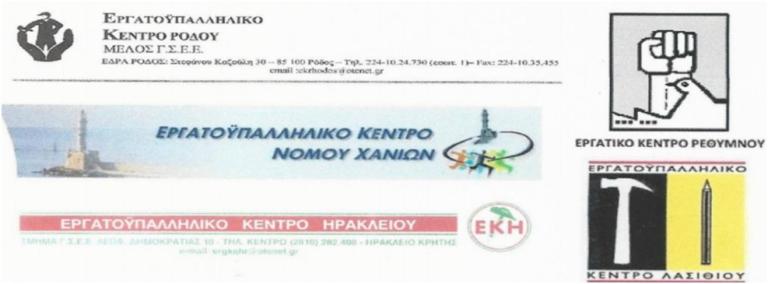 ΓΙΑ ΤΑ ΕΡΓΑΤΙΚΑ ΚΕΝΤΡΑ ΚΡΗΤΗΣ ΚΑΙ ΡΟΔΟΥ