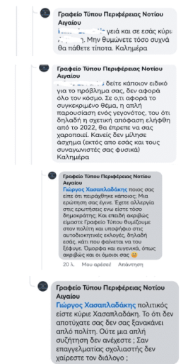 Κι όμως, το τελευταίο διάστημα, η επίσημη σελίδα του Γραφείου Τύπου της Περιφέρειας Νοτίου Αιγαίου εμφανίζεται να απαντά σε πολίτες, αιρετούς και μη, με ύφος ειρωνικό, προσβλητικό, προκλητικό και διχαστικό σαν τρολ του διαδικτύου.