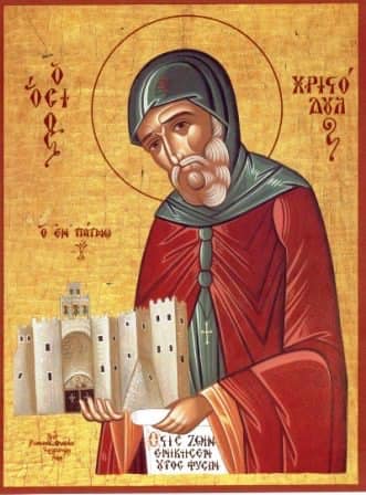 Ο ‘Οσιος Χριστόδουλος, ιδρυτής της Μονής της Πάτμου γεννήθηκε το 1021 στη Νίκαια της Βιθυνίας, στην Μικρά Ασία και το κατά κόσμον όνομα του ήταν Ιωάννης. Οι γονείς του Θεόδωρος και Άννα ήταν ευσεβείς χριστιανοί και ο μικρός Ιωάννης ανατράφηκε με τα ιδανικά του χριστιανισμού. Από νωρίς ασκήτεψε στον Όλυμπο της Βιθυνίας με το όνομα Χριστόδουλος. Ταξίδεψε σε πολλά μέρη, στη Ρώμη, την Παλαιστίνη και τη βόρειο Αφρική. Έγινε ηγούμενος στην περίφημη Λαύρα του Στύλου στο μοναστηριακό κέντρο στο βουνό Λάτρος κοντά στη Μίλητο εξ ού και "Λατρηνός". Εκείνα τα χρόνια οι Τούρκοι κυριεύουν τη Μικρά Ασία και έτσι αναγκάζεται να φύγει. Περιπλανιέται και ιδρύει μονές στην Αλικαρνασσό και στη Κώ.