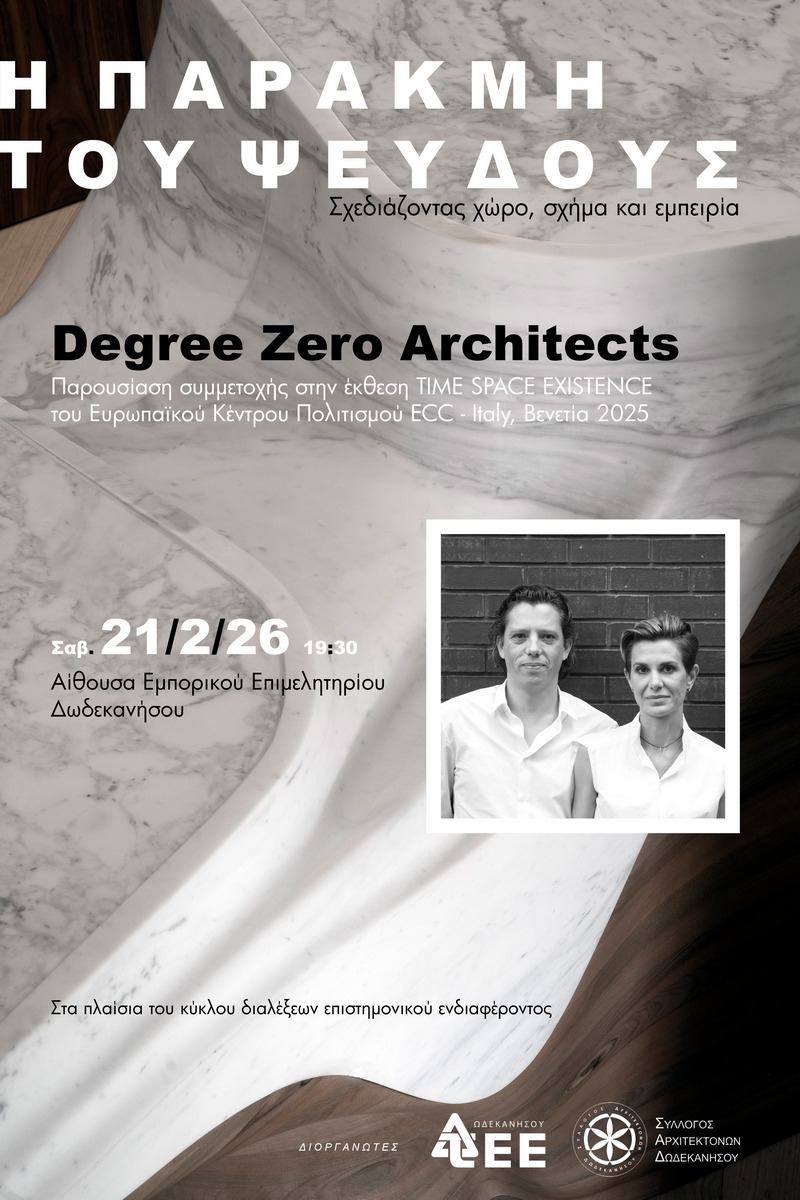 Ο Σύλλογος Αρχιτεκτόνων Δωδεκανήσου σας προσκαλεί στην ομιλία που διοργανώνει με προσκεκλημένο το αρχιτεκτονικό γραφείο Degree Zero, με θέμα: