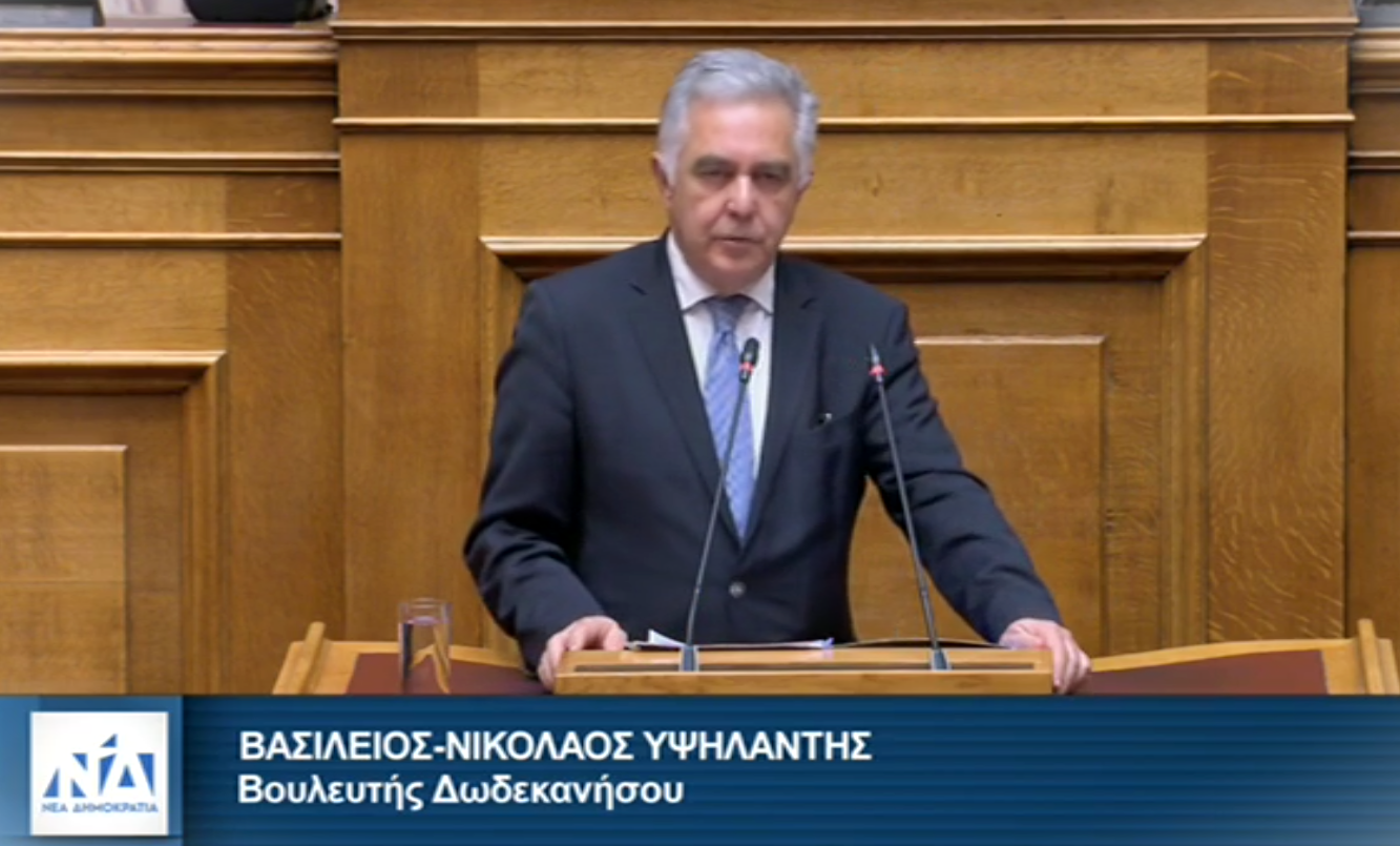 Τα κυριότερα σημεία της ομιλίας του Βουλευτή Δωδεκανήσου Βασίλη Α. Υψηλάντη είναι τα ακόλουθα :