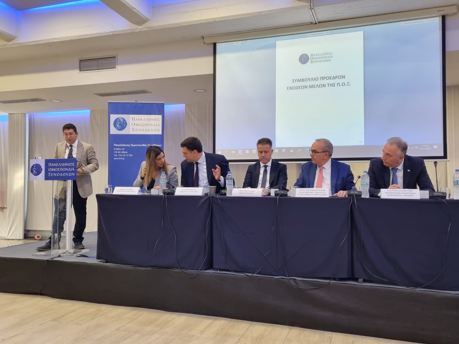 Το Συμβούλιο των Προέδρων πραγματοποιήθηκε παρουσία των κ.κ. Βασίλη Κικίλια – Υπουργού Τουρισμού, Σοφίας Ζαχαράκη – Υφυπουργού Τουρισμού, Νίκου Παπαθανάση – Αν. Υπουργού Ανάπτυξης, Σταύρου Καλαφάτη – Υφυπουργού Εσωτερικών, Προέδρων ΠΟΞ, ΣΕΤΕ, ΞΕΕ και Προέδρων 70 Ξενοδοχειακών Ενώσεων.