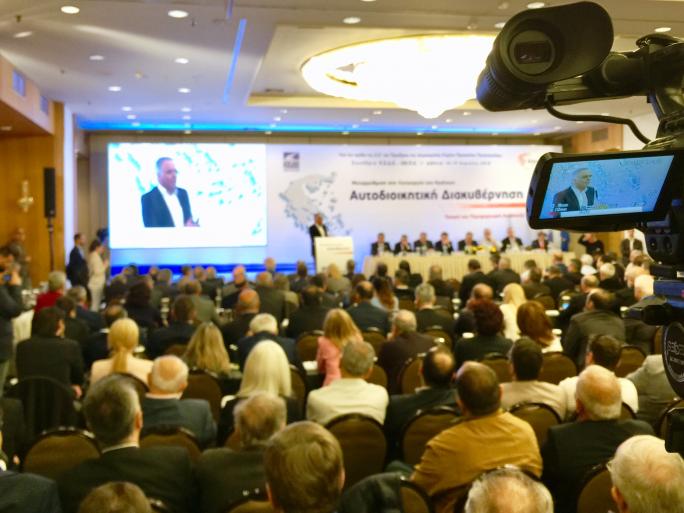 Στο νομοσχέδιο το οποίο θα έρθει τις επόμενες μέρες για διαβούλευση και που θα σας δοθεί, θα έχετε όπως μαθαίνω -και σωστά- τη δυνατότητα να ξανασυζητήσετε και σε επιμέρους αποκεντρωμένες συζητήσεις, αλλά και όλοι μαζί σε ένα νέο έκτακτο Συνέδριο. Το πρώτο το οποίο θέλω να ξεκαθαρίσω είναι ότι θα προβλέπεται η αποσυσχέτιση των δημοτικών και περιφερειακών εκλογών από τις ευρωεκλογές. Η μετάθεσή τους θα γίνει μέσα από τον συγκεκριμένο νόμο για τη δεύτερη Κυριακή του Οκτωβρίου του 2019. Είναι ευνόητο γιατί το θέλουμε αυτό και κατανοητό. Άλλο είναι το διακύβευμα στις αυτοδιοικητικές εκλογές και άλλο στις κεντρικές πολιτικές εκλογές. Κι όποτε υπήρξε αυτή η ταύτιση -νομίζω ότι θα συμφωνήσετε μαζί μου- αλλοίωσε το χαρακτήρα των εκλογών. Το δεύτερο που θα καθιερώνει σε αυτές τις εκλογές, είναι το σύστημα της απλής αναλογικής. Δεν το ακούτε για πρώτη φορά, ούτε το ένα ούτε το άλλο. Να λοιπόν που μέχρι τώρα στα δύο πρώτα σημεία δεν έχουμε κανενός είδους αιφνιδιασμό. Πράγματα γνωστά, πράγματα στα οποία πολλοί μού έχετε εκφράσει κατ’ ιδίαν και δημόσια σε περιφερειακές συσκέψεις τις απόψεις σας και έχουν τη δική τους αξία. Η απλή αναλογική η οποία από όσο γνωρίζω τουλάχιστον μέχρι πριν από λίγα χρόνια, ήταν και θέση της ΚΕΔΕ. Εν πάση περιπτώσει, νομίζω ότι άλλωστε κοιτώντας και την ευρωπαϊκή πραγματικότητα, όπως εσείς οι ίδιοι την αναδείξατε και στο τελευταίο Συνέδριο της ΚΕΔΕ που κάνατε, υπήρξε μία εκτενής αναφορά στα εκλογικά συστήματα που ισχύουν στην υπόλοιπη Ευρώπη. Θα δούμε ότι είναι εκδοχές της απλής αναλογικής. Μόνο εδώ συμβαίνει αυτό το οποίο έχουμε. Μόνο εδώ υπάρχει ένα τέτοιο εκλογικό σύστημα, το οποίο θεωρώ ότι έχει κλείσει τον κύκλο του. Δεν μπορούμε λοιπόν να μιλάμε για δικτατορίες των μειοψηφιών. Από που κι ως που είναι δικτατορία των μειοψηφιών, η προσπάθεια να διαμορφωθούν ευρύτατες πλειοψηφικές παρατάξεις και πλειοψηφίες μέσα στους δήμους που αντιστοιχούν σε μεγάλες πλειοψηφίες μέσα στην ίδια την κοινωνία; Από που κι ως που πρόκειται για ένα φοβερό ευφάνταστο σχέδιο της κυβέρνησης να αλώσει τους δήμους; Μα θα τους άλωνε κανείς αν πηγαίναμε σε ένα εκλογικό σύστημα, το οποίο θα πολλαπλασίαζε όσους ψήφιζαν ανθρώπους που έχουν το «χρίσμα» του ΣΥΡΙΖΑ και σε όσους είχαν το «χρίσμα» του κυρίου Βορίδη θα τους αφαιρούσε ψήφους. Αυτό θα ήταν προσπάθεια άλωσης. Εμείς λέμε λοιπόν «Τα του καίσαρος τω καίσαρι» και κυρίως δημοκρατία, συναίνεση, σύνθεση. Αυτό είναι το σημαντικό το οποίο πρέπει να κατακτήσουμε. Αυτό έχει ανάγκη η ελληνική κοινωνία και η Αυτοδιοίκηση. Δεν μπορεί να κρύβεται κανείς, καμία μειοψηφία πίσω από το άλλοθι ότι «Κοίταξε Δήμαρχε, πες τα μόνος σου εσύ με τους δικούς σου, εγώ μπορεί να καταψηφίζω εσαεί» αυτή η στάση ανευθυνότητας δεν δικαιολογείται για κανέναν είτε είναι στην πλειοψηφία είτε είναι στη μειοψηφία.