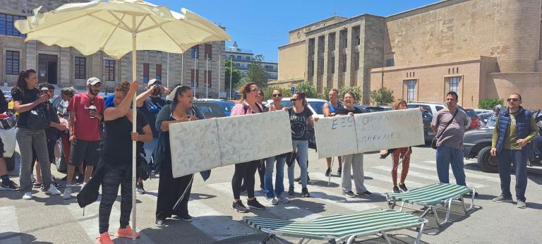 Συνεχίζουν να διαμαρτύρονται οι ομπρελάδες της Ρόδου στο δρόμο μπροστά από το δημαρχείο Ρόδου μετά τα αποτελέσματα του διαγωνισμού για πόστα στην περιοχή Sun Wing που άλλαξαν χέρια, έφυγαν απο τους ροδίτες ομπρελάδες που τα διαχειριζόταν εδώ και χρόνια. "Έξω οι καρχαρίες από τις παραλίες της Ρόδου" και "Κάτω τα χέρια από τις παραλίες, ανήκουν στους Ροδίτες" είναι τα πανό που κρατούν και διαμαρτύρονται. Είναι όλοι μαζί γιατί φοβούνται οτι και της κεντρικής παραλίας θα έχουν την ίδια τύχη....Νωρίτερα είχαν ανοίξει δυο ομπρέλες μέσα στο δρόμο
