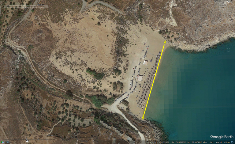 Ωστόσο,παράτην εκ του νόμου εξαίρεσητης παραχώρησης χρήσης και το συνεπακόλουθο γεγονός ότι ηανωτέρω παραλία δεν συμπεριλήφθηκε στις δημοπρασίες που πραγματοποιήθηκαν από την Κτηματική Υπηρεσία Δωδεκανήσου, εδώ και μήνες οι πολίτες της Ρόδουπαρακολουθούμε την απρόσκοπτη λειτουργία της επιχείρησης με αυθαίρετη κατάληψη του μεγαλύτερου μέρους της παραλίας με ομπρελοκαθίσματα και την παράνομη λειτουργία επιχείρησης υγειονομικού ενδιαφέροντος, χωρίς να εκτελείταιτο πρωτόκολλο κατεδάφισης της Κτηματικής Υπηρεσίας Δωδεκανήσου.Καθημερινώς δε, η επιχείρηση αυτή προσπαθεί να αποκλείσει τη χρήση της παραλίας από τους πολίτες και τους επισκέπτες του νησιού που δεν επιθυμούν να κάνουν χρήση των υπηρεσιών αυτής.