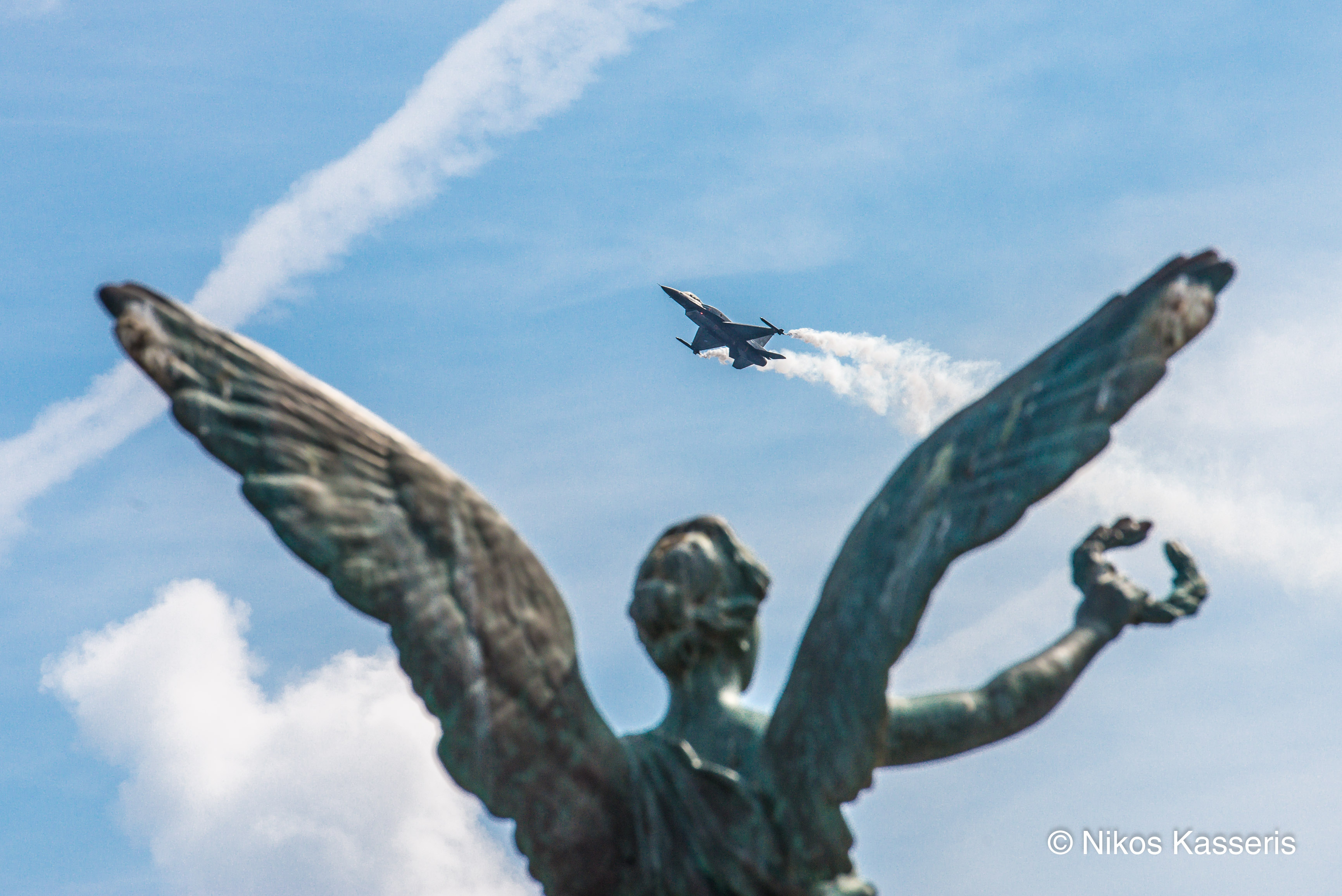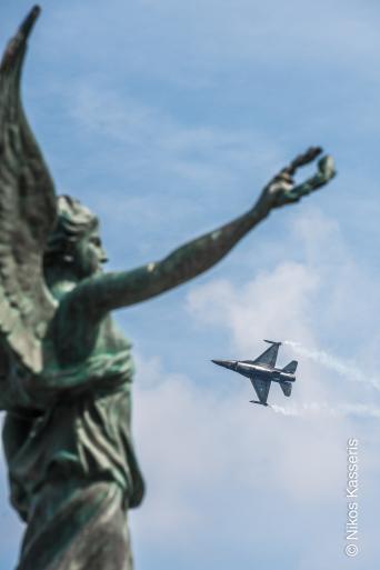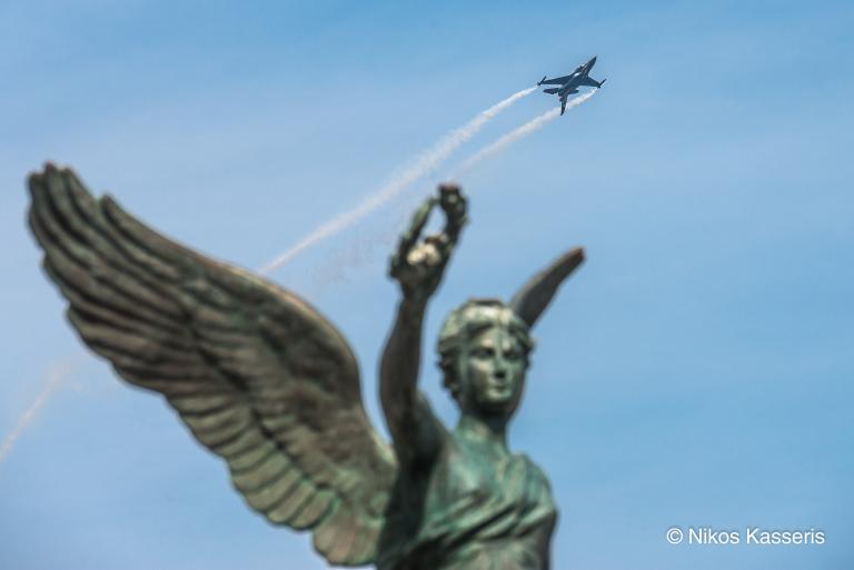 Ο φακός του Νίκου Κασσέρη "εγκλώβισε" το F16 της ομάδας ΖΕΥΣ την ώρα που το άγαλμα της Νϊκης το στεφανώνει κατα τη διάρκεια της επίδειξης στη χθεσινή παρέλαση στο Μανδράκι της Ρόδου. Το αποτέλεσμα είναι μοναδικό! ο Νίκος Κασσέρης γράφει στο facebook : Το άγαλμα με τη Νίκη να "στεφανώνει" συμβολικά το F-16 στην εντυπωσιακή επίδειξή του μετά την μεγάλη παρέλαση στη Ρόδο. Το' νιωθα λίγο σαν χρέος μου, σήμερα, να βρεθώ εκεί.