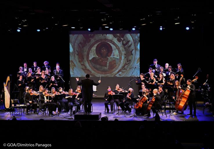 Η Ανθούλα Κατσιματίδη, η οποία απηύθυνε χαιρετισμό στη συναυλία και υπηρέτησε ως αφηγήτρια αυτού του αξιοσημείωτου έργου, μοιράστηκε ιδέες για τη ζωή και την εποχή του Θεοφάνη, ενός από τους μεγαλύτερους βυζαντινούς αγιογράφους όλων των εποχών.