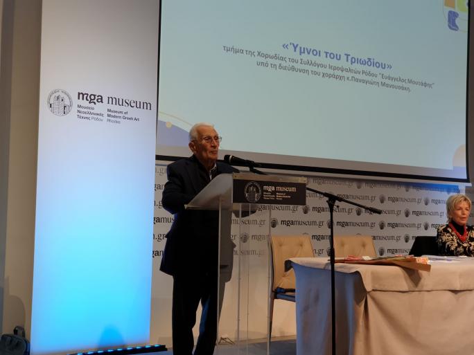 Λόγω της φύσεως του περιεχομένου του βιβλίου του κ. Σπάρταλη είχε προσκληθεί και ολιγομελής Βυζαντινή χορωδία Ιεροψαλτών Ρόδου, «Ευάγγελος Μουτάφης», η οποία έψαλλε δύο ψαλμωδίες του Τριωδίου και μία μουσική επένδυση με βυζαντινό μουσικό τρόπο, ενός ποιήματος του συγγραφέα με τίτλο «Ύμνος παρακλήσεως εις ανομβρίαν» που είχε γίνει από τον αείμνηστο Μεγάλο Άρχοντα ιεροψάλτη της Μεγάλης του Χριστού Εκκλησίας Μανώλη Θεουλάκη, που πραγματικά προκάλεσε ρίγη συγκινήσεως στο κοινό.