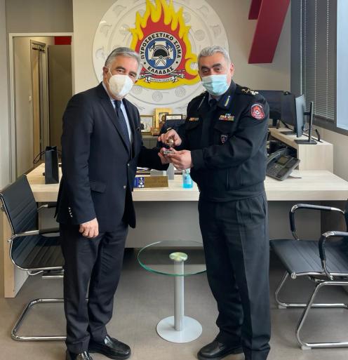 Ο Βασίλης Α. Υψηλάντης με τον Αρχηγό του Πυροσβεστικού Σώματος Αντ. Αλέξιο Ράπανο για θέματα δωδεκανησιακού ενδιαφέροντος