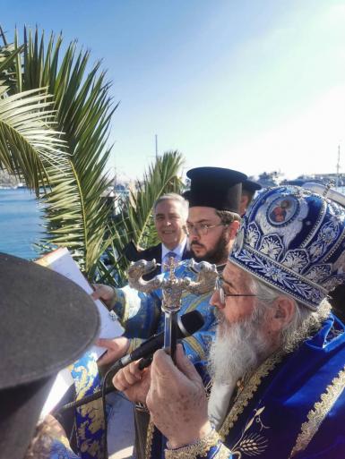 Με την ευκαιρία της εορτής των Θεοφανίων παρέστη στην Αρχιερατική Λειτουργία στον Μητροπολιτικό Ναό του Χριστού και στη συνέχεια στην τελετή του Αγιασμού των υδάτων στο λιμάνι της Καλύμνου..