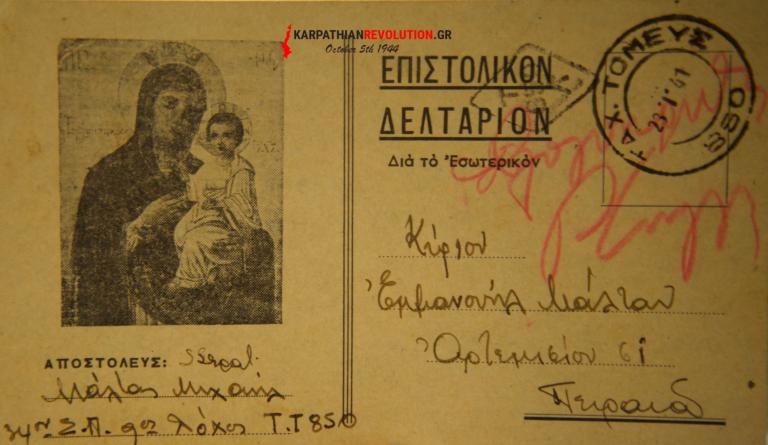 Η επιστολή του Ανθυπίατρου Μιχάλη Μάλτα, προς τη μητέρα και την αδελφή του, γράφτηκε στις 11.1.1941 από το Αλβανικό μέτωπο.