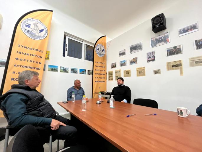Ο Παναγιώτης Κουνάκης συναντήθηκε με το δ.σ του Συνδέσμου Ιδιοκτητών Φορτηγών Αυτοκινήτων Δ.Χ. Ρόδου «Κολοσσός» και τον πρόεδρο των Ιδιοκτητών Φορτηγών Δ.Χ. Ρόδου