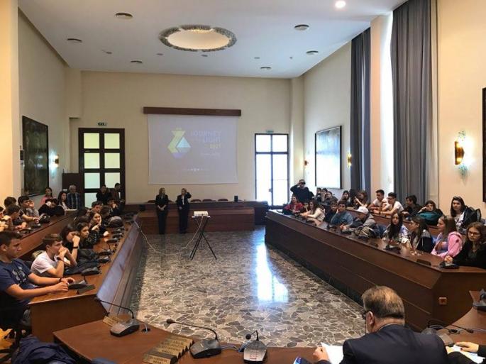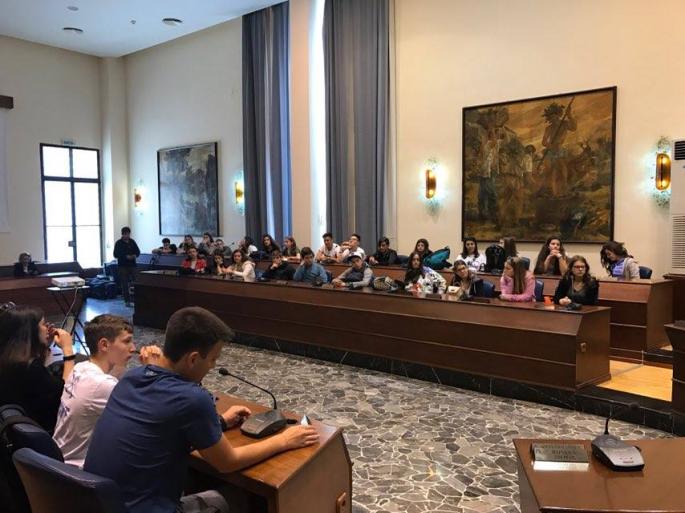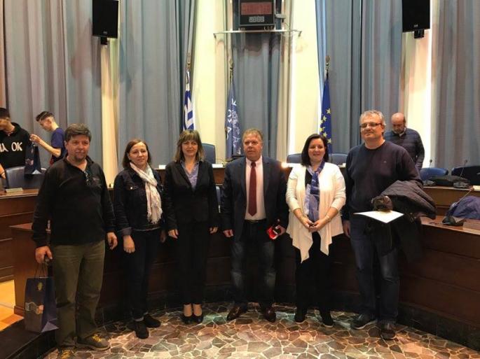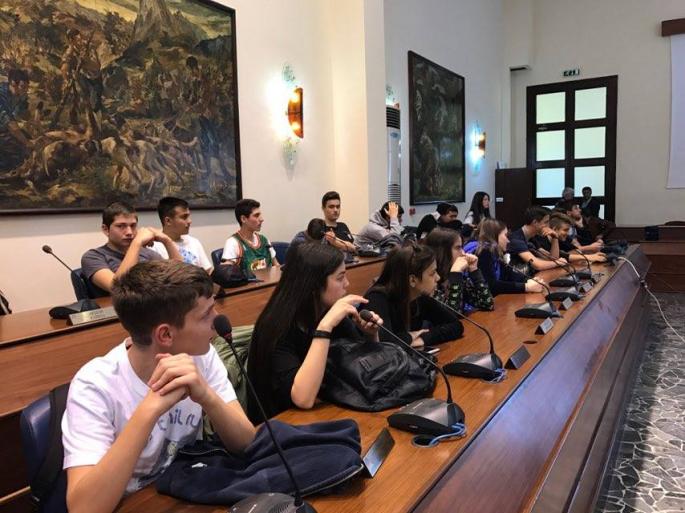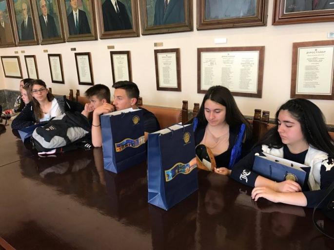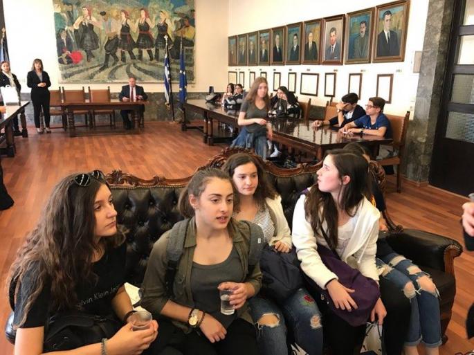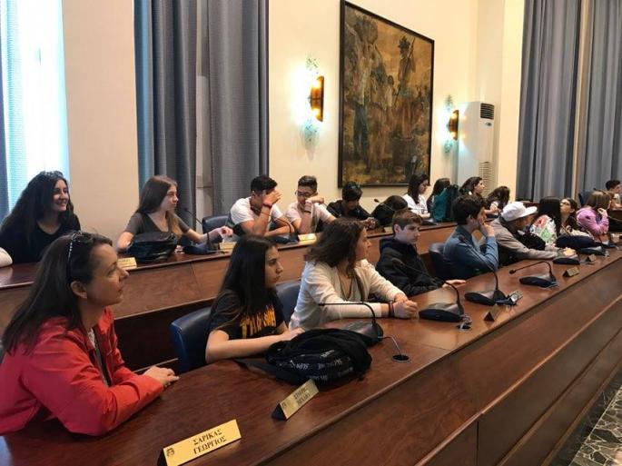 Τους 52 μαθητές δύο τμημάτων του Αρσακείου Γυμνασίου Θεσσαλονίκης και τους καθηγητές τους, καλωσόρισαν η αντιδήμαρχος Τουρισμού κα Μαρίζα Χατζηλαζάρου, ο αντιδήμαρχος Διοικητικών κος Στέργος Παρδαλός και ο αντιδήμαρχος Παιδείας, Δια Βίου Μάθησης και Προσχολικής Αγωγής κ. Γιάννης Κορωναίος, σε μία ξεχωριστή εκδήλωση που πραγματοποιήθηκε σήμερα το πρωί, στην αίθουσα συνεδριάσεων του Δημοτικού Συμβουλίου.
