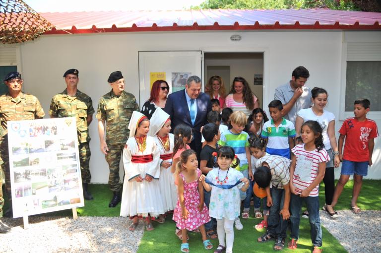 Ο ΥΕΘΑ Πάνος Καμμένος στα εγκαίνια σχολείου που κατασκεύασαν οι Ένοπλες Δυνάμεις στο χώρο φιλοξενίας μεταναστών στην Τήλο