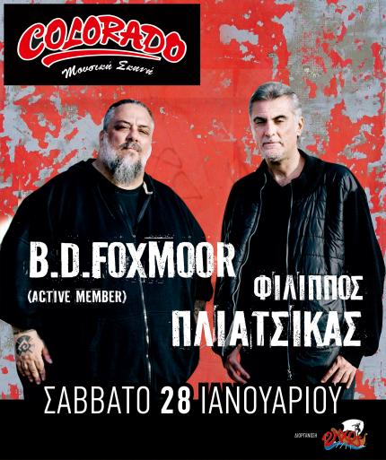 Ο ΦΙΛΙΠΠΟΣ ΠΛΙΑΤΣΙΚΑΣ και ο B.D.FOXMOOR (ActiveMember) μετά τις soldout εμφανίσεις τους στο Γυάλινο Μουσικό Θέατρο έρχονται στη Ρόδο, για μια μοναδική παράσταση το Σάββατο 28 Ιανουαρίου στη μουσική σκηνή του COLORADO. Μια απρόβλεπτη και ιστορική συνάντηση που ενώνει δύο παράλληλες μεγάλες διαδρομές.