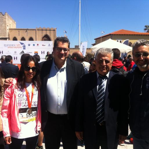 παρακολούθησε τους αγώνες του 4ου Μαραθωνίου που πραγματοποιήθηκε στην πόλη της Ρόδου με μεγάλη συμμετοχή αθλητών από την Ελλάδα και το εξωτερικό.