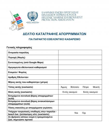 - Ντοσιέ με Δελτίο Καταγραφής Απορριμμάτων,