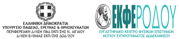 Εργαστηριακό Κέντρο Φυσικών Επιστημών Ρόδου – Νοτίου Συγκροτήματος Δωδεκανήσου Πάροδος Ρίτσου, Αγ. Απόστολοι, 85100 Ρόδος Τηλ: 2241069233, email: ekferodou@sch.gr, url: ekfe.dod.sch.gr