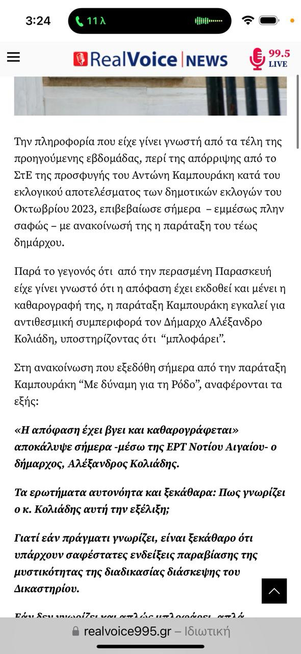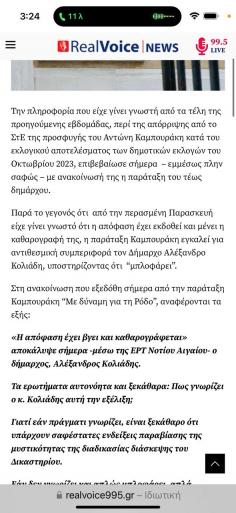 Αυτή είναι η ρητή και κατηγορηματική απάντηση του Προέδρου του Γ’ Τμήματος του Συμβουλίου της Επικρατείας, σε σχετικό ερώτημα που απευθύναμε μετά τις γνωστές δηλώσεις του κ. Κολιάδη. Δηλώσεις που μάλιστα επιβεβαίωσε και ραδιοφωνικός σταθμός: https://realvoice995.gr/aperrifthi-apo-to-ste-i-enstasi-tou-antoni-kabouraki/