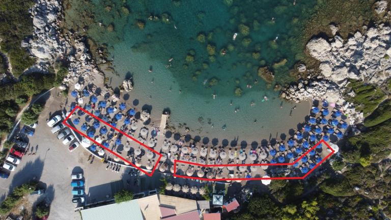 Ειδικά στην παραλία  Άντονι Κουίν,  η  αυθαίρετη κατάληψη του χώρου ήταν εξοργιστική. Ενώ η μίσθωση ήταν για 82 τμ,  έγινε κατάληψη έκτασης  1200 τμ !!  Ενώ δηλαδή νόμιμα θα έπρεπε να υπάρχουν 24  ξαπλώστρες, είχαν τοποθετηθεί 190. Σε κάποια σημεία της παραλίας βρίσκονταν  ακόμη και μέσα στη θάλασσα.