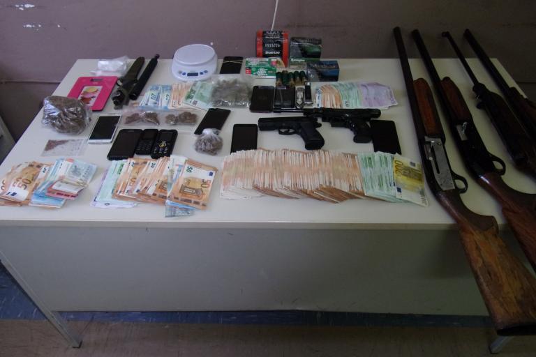 Κατασχέθηκαν ποσότητες κάνναβης, ζυγαριές ακριβείας, κυνηγετικά όπλα, φυσίγγια, οχήματα, χρήματα ποσά, κ.ά.