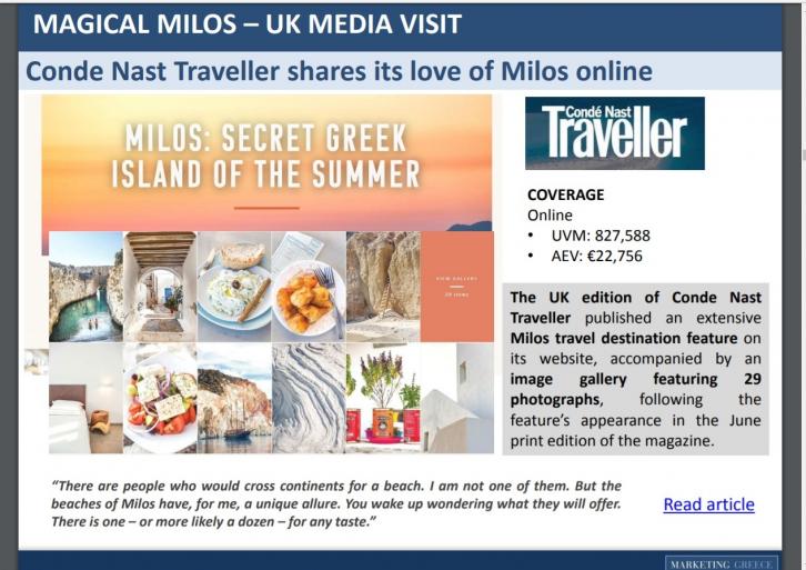 Στο πλαίσιο της εφαρμογής του στρατηγικού πλάνου τουριστικής προβολής της Περιφέρειας Νοτίου Αιγαίου, δημοφιλή και υψηλής αναγνωσιμότητας έντυπα και ηλεκτρονικά μέσα, από καίριες ευρωπαϊκές αγορές όπως Γαλλία, Αγγλία, Γερμανία, Αυστρία, Βέλγιο, Πολωνία, Μεξικό και ΗΠΑ, προβάλλουν τη μοναδικότητα των νησιών, αναδεικνύοντας τις ιδιαίτερες ομορφιές τους. Τα δημοσιεύματα/ρεπορτάζ είναι αποτέλεσμα των δημοσιογραφικών ταξιδιών, που πραγματοποιούνται τις περιόδους Μάιο –Ιούνιο & Σεπτεμβρίο –Οκτώβριο (στο πλαίσιο πάντα του προγράμματος προβολής της Περιφέρειας). Τα ταξίδια αυτά σχεδιάζονται και υλοποιούνται από την Marketing Greece σε συνεργασία με την Διεύθυνση Τουρισμού της Περιφέρειας και το Περιφερειακό Γραφείο ΣΕΤΕ, με την υποστήριξη της Aegean Airlines που χορηγεί τις αερομεταφορές. Παράλληλα, η Διεύθυνση Τουρισμού της ΠΝΑΙ σε συνεργασία με τον ΕΟΤ και τη Γενική Γραμματεία Ενημέρωσης και Επικοινωνίας διοργανώνει μία σειρά από στοχευμένα δημοσιογραφικά ταξίδια. Αποτέλεσμα όλων αυτών των ταξιδιών είναι μεγάλης έκτασης αφιερώματα σε κορυφαία ΜΜΕ του εξωτερικού και blogs με μεγάλη επιρροή. Ενδεικτικά παρακάτω κάποια από τα δημοσιεύματα για την περίοδο Ιανουαρίου-Ιουνίου 2017: Η Ρόδος, η κοσμοπολίτικη και παραδοσιακή, η διαχρονική και συνάμα σύγχρονη, κέντρισε το ενδιαφέρον του γερμανικού πρακτορείου ειδήσεων DPA. Περισσότερα από 200 έντυπα και ηλεκτρονικά μέσατης Γερμανίας και της Αυστρίας όπως Focus.de, Bild.de, Spiegel.de, T-Online.de και Berliner-Zeitung.de αναπαρήγαγαν το άρθρο του Γερμανικού Πρακτορείου Ειδήσεων (DPA)για τη Ρόδο με τίτλο «Νέοι ταλαντούχοι Ροδίτες πυροδοτούν τη σπίθα της δημιουργικότητας». Το άρθρο παρουσιάζει τέσσερις νέους καλλιτέχνες και σχεδιαστές της Ρόδου, οι οποίοι αντιστέκονται στην οικονομική κρίση με ασπίδα τη θετική τους ενέργεια και παραγωγικότητα, αγγίζοντας συνολικά πάνω από 800 εκατ. αναγνώστες με την ισοδύναμη διαφημιστική αξία να ξεπερνά το 1,5 εκατ. ευρώ. Σε συνέχεια του ταξιδιού του Γερμανικού Πρακτορείου Ειδήσεων στη Ρόδο, πραγματοποιήθηκε ταξίδι του dpa στην Αστυπάλαια. Το μικρό, μαγευτικό νησί της Αστυπάλαιας δέχθηκε τεράστια προβολή στο γερμανόφωνο κοινό, μέσα από δημοσίευμα του Γερμανικού Πρακτορείου Ειδήσεων (dpa) το οποίο έχει αναπαραχθεί από δεκάδες έντυπα και ηλεκτρονικά ΜΜΕ. Συνολικά πάνω από 150 έντυπα και ηλεκτρονικά δημοσιεύματα του γερμανικού και αυστριακού τύπου όπως Bild.de, allgemeine-zeitung.de, tz.de, αναπαρήγαγαν το άρθρο του dpa, αγγίζοντας συνολικά πάνω από 600 εκατ. αναγνώστες και 33 εκατ. επισκέπτες των ηλεκτρονικών μέσων με την ισοδύναμη διαφημιστική αξία να αγγίζει το 1,4 εκατ. ευρώ! Το Conde Nast Traveller, UK δημοσίευσε ένα 10σέλιδο αφιέρωμα για τη Μήλο, εστιάζοντας στην ιστορία και στον πολιτισμό του νησιού, τις παραλίες, τη γαστρονομία και τη φιλοξενία. Στον ιστότοπο του Conde Nast Traveller, UK δημοσιεύθηκε ένα αφιέρωμα για τη Μήλο που συνοδεύεται από 29 φωτογραφίες του νησιού. Στη Βελγική έκδοση του ELLE, δημοσιογράφος Celine Pecheux ανακαλύπτει τη μαγεία των οικογενειακών διακοπών. Με αφορμή τον 4ο Διεθνή Μαραθώνιο, επισκέφθηκαν τη Ρόδο οι δημοσιογράφοι Martin Leggatt από την Αγγλία, Natascha Marakovits από την Αυστρία και Marion Buiatti από τη Γαλλία, μεταφέροντας τις εμπειρίες τους από τον αγώνα και την περιρρέουσα ατμόσφαιρα. Επίσης, η Mittelbeyerische Zeitung της Βαυαρίας, δημοσίευσε εκτενές αφιέρωμα για τις αμέτρητες τοποθεσίες όπου μπορεί κανείς να κάνει kite surfing στη Ρόδο. Συνεργεί