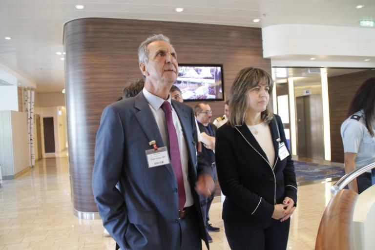 Στη δεξίωση που δόθηκε μετά το πέρας της τελετής υποδοχής η κα Χατζηλαζάρου αντάλλαξε απόψεις με την γενική διευθύντρια της TUI CRUSES κα Doreen Jana Kumpel και τον Έλληνα πλοίαρχο του κρουαζιεροπλοίου Mein Sciff 5 κο Ιωάννη Αναστασίου, παρουσία και του Ρόδιου τουριστικού πράκτορα Τσαμπίκου Χατζημιχάλη, έμπειρου σε ζητήματα home port, για την πιθανότητα να συμπεριληφθεί η Ρόδος στους προορισμούς home porting της εταιρείας, στην Ελλάδα.