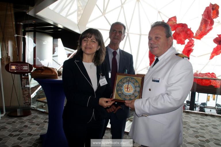 Η αντιδήμαρχος κα Χαζτηλαζάρου δεν παρέλειψε να αναφερθεί και στον Έλληνα πλοίαρχο κο Ιωάννη Αναστασίου, τονίζοντας πως «είναι τιμή για την Ελλάδα να είναι πλοίαρχος ενός τέτοιου σύγχρονου και νεότευκτου κρουαζιεροπλοίου ένας Έλληνας ! ». Της δεξίωσης στο πλοίο προηγήθηκε η θερμή υποδοχή με μουσική, παραδοσιακούς χορούς και δώρα, που επεφύλαξαν στους επιβάτες του νεότευκτου κρουαζιεροπλοίου Mein Sciff 5 τα στελέχη της Διεύθυνσης Τουρισμού του Δήμου Ρόδου σε συνεργασία με τον ΔΟΠΑΡ, γεγονός που σχολιάσθηκε θετικά από όλους, με τον πλοίαρχο κο Αναστασίου να δηλώνει εντυπωσιασμένος από την εγκάρδια υποδοχή και να συγχαίρει το Δήμο Ρόδου και τα στελέχη της Διεύθυνσης Τουρισμού για το θερμό καλωσόρισμα.