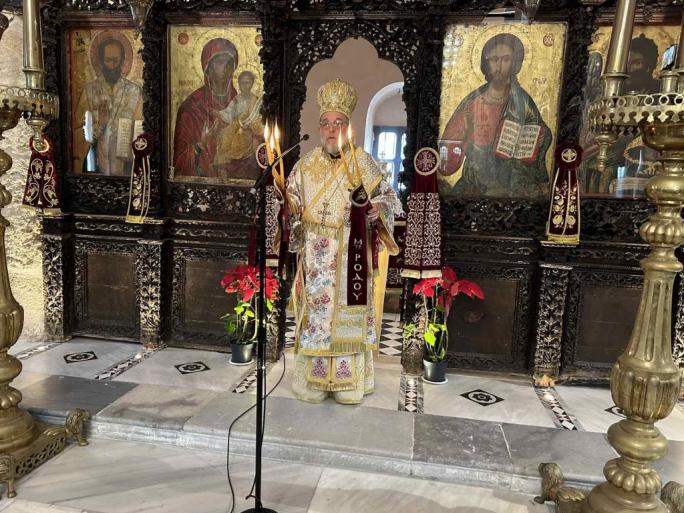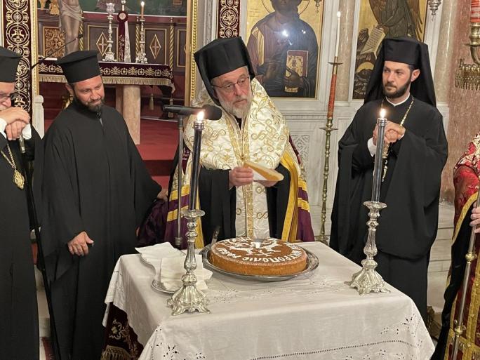 Την ημέρα της Εορτής χοροστάτησε του Όρθρου, τέλεσε την Θεία Λειτουργία και προέστη της καθιερωμένης Δοξολογίας στον Μητροπολιτικό ιερό Ναό Εισοδίων της Θεοτόκου. Μετά την Θεία λειτουργία στην παρακείμενη αίθουσα παρετέθη δεξίωση και έλαβε χώρα η ευλογία της Αγιοβασιλόπιττας του ιερού Ναού.