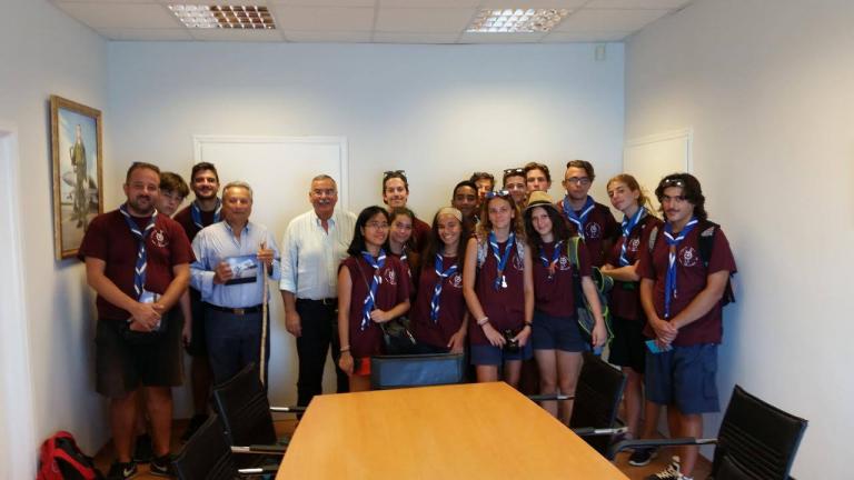 Δεκαεπτά έφηβοι και επιτελείο ενήλικων εκπαιδευμένων βαθμοφόρων από την 8η, 14, και 52η Κοινότητα Ανιχνευτών Αθηνών – Σώμα Ελλήνων Προσκόπων-κατασκηνώνουν στο νησί της Καρπάθου (6- 17 Αυγούστου) Χθες (10/08)πραγματοποίησαν εθιμοτυπική επίσκεψη στον Δήμαρχο Καρπάθου κ. Ηλία Ανδρ. Λάμπρο, εκφράζοντας τις θετικές εντυπώσεις από την παραμονή τους στο νησί και την φιλοξενία των κατοίκων. Παρόν στη συνάντηση ήταν και ο Πρόεδρος του Συλλόγου Απανταχού Καρπαθίων κ. Ι. Καραϊτιανός. «Σκοπός της επιλογής της Καρπάθου ήταν να γνωρίσουμε από κοντά τη ζωή στο νησί σας , να έρθουμε σε επαφή με τους ανθρώπους , τα ήθη, τα έθιμα και την ιστορία τους. Ένας από τους βασικούς στόχους της δράσης μας είναι η κοινωνική προσφορά, με σχεδιασμένες από πριν δραστηριότητες με σκοπό να φέρουμε το στίγμα μας στον τόπο σας βοηθώντας την τοπική κοινωνία. Κάτι τέτοιο δίνει την ευκαιρία στα παιδιά της ομάδας μας όσο και στους κατοίκους των νησιών να αντιληφθούν, με τρόπο βιωματικό,, πως όσο μεγάλη και αν είναι η απόσταση που μας χωρίζει τόσο κοντά είναι σημαντικό να αισθανόμαστε» υπογραμμίζει ο Αρχηγός Συστήματος Παναγιώτης Καζαζίδης στη σχετική ενημερωτική επιστολή του. Στο πλαίσιο της χθεσινής συνάντησαν πραγματοποιήθηκε ανταλλαγή δώρων και από τις δύο πλευρές.