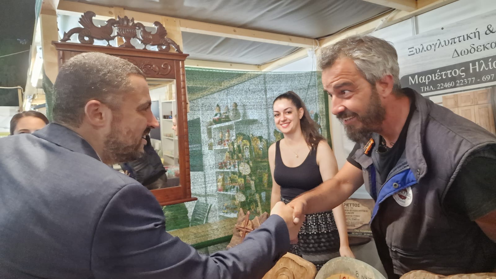 Ο κ. Νίκος Γερονικόλας και τα στελέχη της παράταξης «Αρχή Οργάνωσης» για το νησί μας περιηγήθηκαν στα περίπτερα της έκθεσης, δοκίμασαν τα προσφερόμενα προϊόντα και συνομίλησαν με εκθέτες και επισκέπτες.