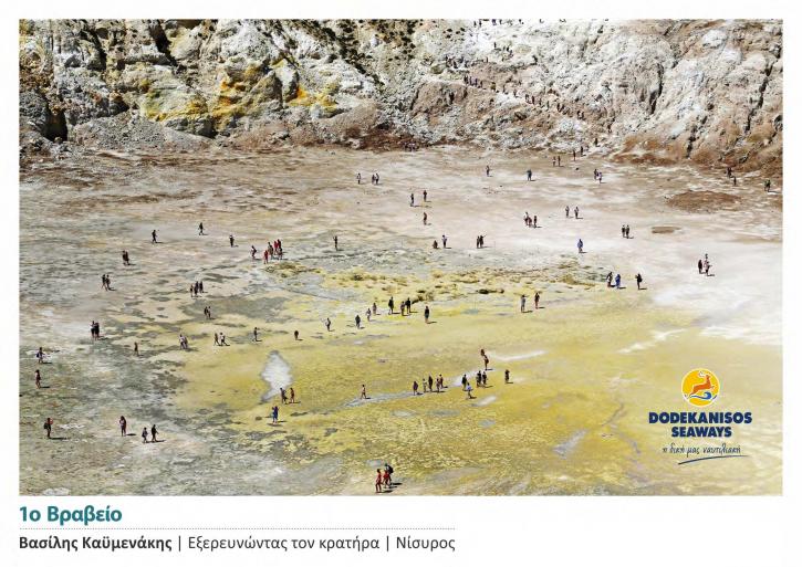 • Το πρώτο βραβείο απέσπασε ο κ. Βασίλης Καϋμενάκης με τη φωτογραφία «Εξερευνώντας τον κρατήρα» στη Νίσυρο.