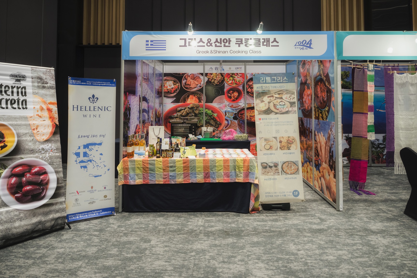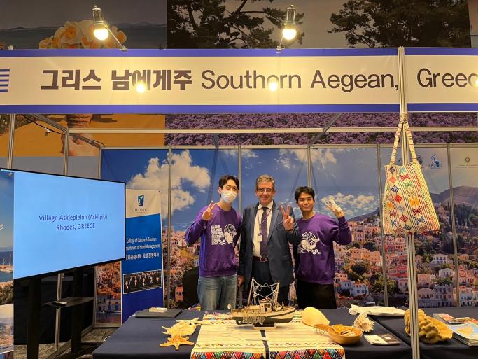 Δύο μεγάλα περίπτερα, το ένα για την προβολή του προορισμού Ρόδος – Δωδεκάνησα και το άλλο για τη γνωριμία της τοπικής γαστρονομίας – της Κουζίνας του Αιγαίου, έδωσαν πολύ παραστατικά τη γνωριμία με τα νησιά, τις ασχολίες των κατοίκων, τα κεράσματα, τις γεύσεις κλπ. Στο περίπτερο, δύο αγγλόφωνοι Κορεάτες φοιτητές  του Πανεπιστημίου Jeonju πρόσφεραν  υλικό και παρείχαν πληροφορίες στους επισκέπτες.