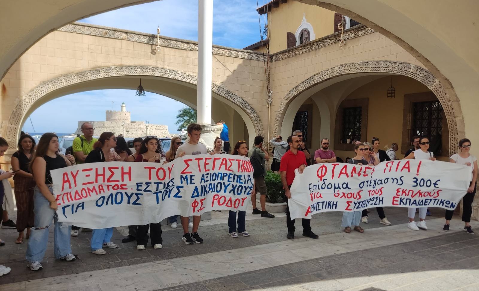 Οι συγκεντρωμένοι εκπαιδευτικοί και φοιτητές απαιτήσαμε και συναντηθήκαμε με εκπρόσωπο της Περιφέρειας στον οποίο επιδώσαμε τα ψηφίσματά μας. Στη συνάντησή μας με τον Αντιπεριφερειάρχη τονίσαμε το οξύτατο στεγαστικό πρόβλημα που αντιμετωπίζουν οι εκπαιδευτικοί και οι φοιτητές στη Ρόδο, αλλά και σε άλλα μέρη της Ελλάδας και δηλώσαμε τη διεκδίκησή μας για επίδομα ενοικίου 300 ευρώ. Εξηγήσαμε πως τα τεράστια ποσά εκατομμυρίων ευρώ που υπολογίζεται ότι θα επενδυθούν το επόμενο διάστημα στο νησί αποτελούν πρόκληση όταν εκπαιδευτικοί στο νησί αναγκάζονται ακόμα να κοιμούνται στα αυτοκίνητά τους!