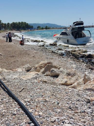 Μάλιστα στην προσπάθεια του να προσεγγίσει την ακτή, προσάραξε στα βράχια, μπροστά από το ξενοδοχείο Nautica Blue.