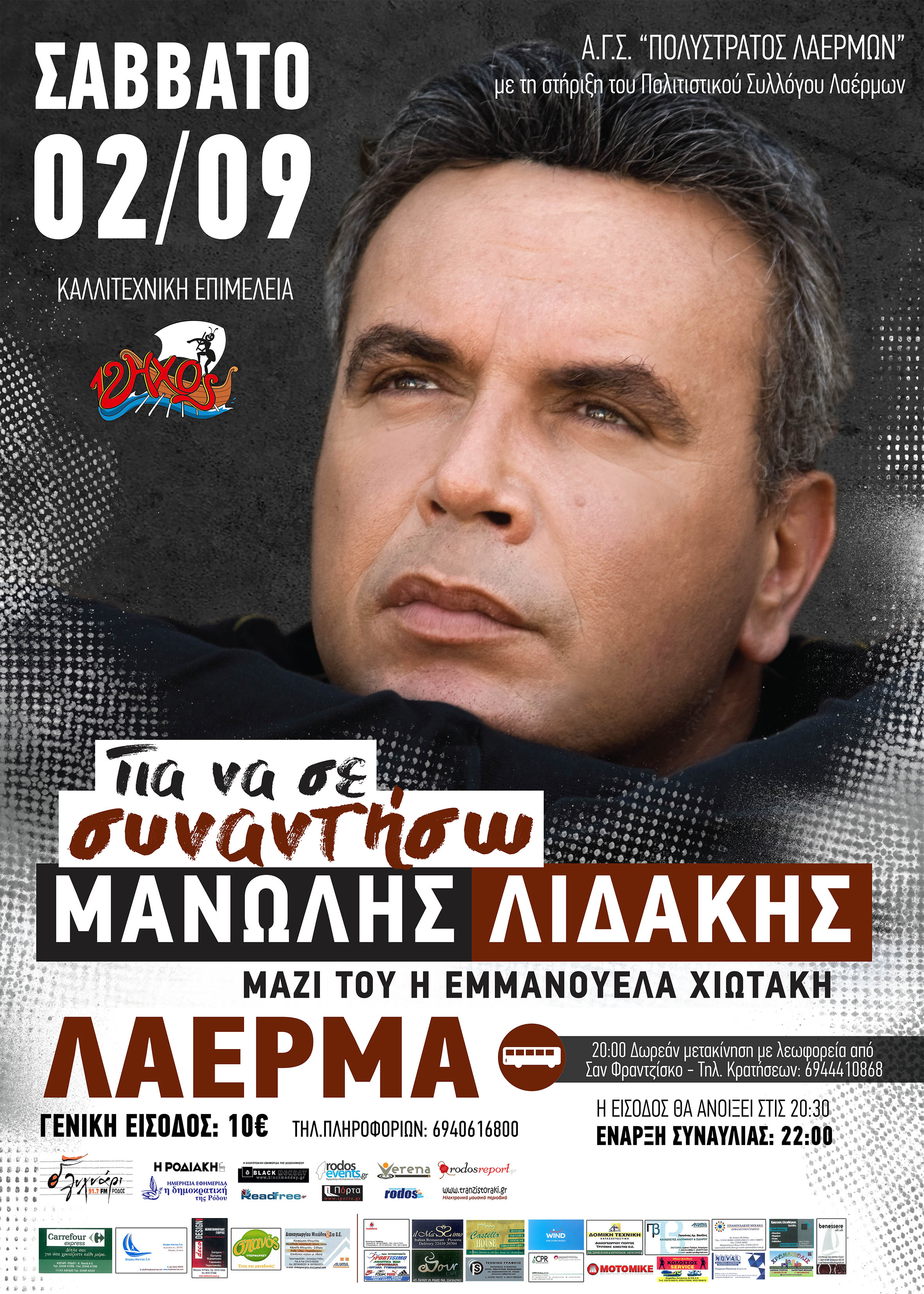Σήμερα η μεγάλη συναυλία του ΜΑΝΩΛΗ ΛΙΔΑΚΗ στα Λάερμα!! «ΓΙΑ ΝΑ ΣΕ ΣΥΝΑΝΤΗΣΩ» Μαζί του η Εμμανουέλλα Χιωτάκη
