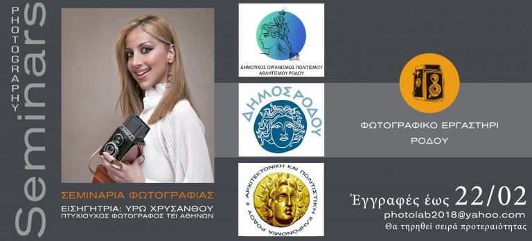 - Πληροφορίες - Εγγραφές στο photolab2018@yahoo.com έως τις 22/02/2018 - Τηλ: 22410 78649 - 1η Συνάντηση γνωριμίας 23/02/2018 - Έναρξη Σεμιναρίου 02/03/2018