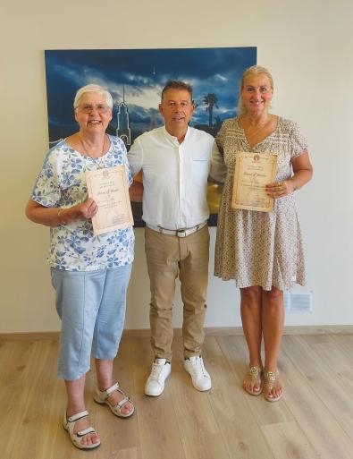 Βραβεύθηκαν επίσης ο κ. Tomas Suchanek από την Τσεχία που έχει επισκεφθεί της Ρόδο 15 φορές και μένει στο ξενοδοχείο El Greco, η κα Annelise Pabijan και η κόρη της Christine από τη Δανία, που έχουν έλθει στο νησί 15 φορές και διαμένουν στο ξενοδοχείο Mitsis Petit Pαlais.