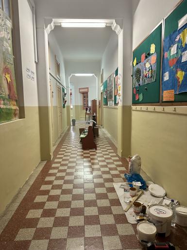 Ήδη προχώρησε η ολοκλήρωση επειγουσών επεμβάσεων άρσης τυχόν επικινδυνότητας με αντίστοιχες εργασίες περιμετρικά του κτηρίου, οι οποίες θα επαναληφθούν όπου απαιτηθεί πριν την έναρξη της σχολικής περιόδου, ενώ ταυτόχρονα εκτελούνται στο εσωτερικό του κτηρίου μικρότερης κλίμακας εργασίες με αυτεπιστασία, όπως αντικατάσταση φθαρμένων υδρορροών, τοπικές μονώσεις, ελαιοχρωματισμοί κ.α. κατά σειρά προτεραιότητας.