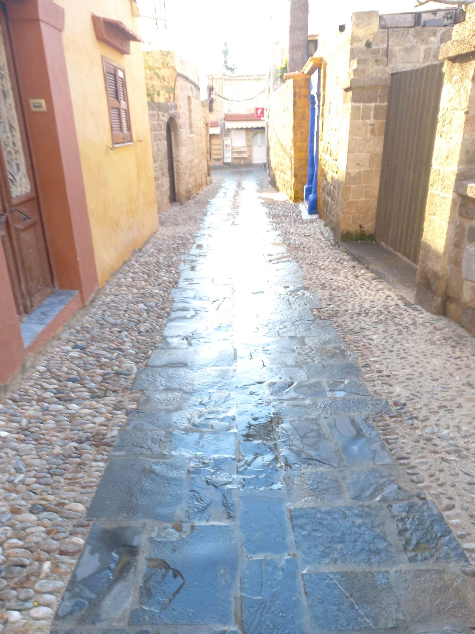 Το συγκεκριμένο τμήμα του έργου, μελετήθηκε, εντάχθηκε, χρηματοδοτήθηκε και έλαβε τις απαραίτητες εγκρίσεις, κατόπιν πρωτοβουλίας του αρμοδίου Αντιδημάρχου Δρα. Στέφανου Ι. Δράκου. Η εκτέλεσή του, περιλάμβανε τη δημιουργία διαδρόμου πλακών τύπου Λάρδου στο μέσο της οδού, διατήρηση πλευρικά αυτής του παραδοσιακού χαλικόστρωτου και κατασκευή τριών (3) φρεατίων (διπλών) μαρμάρινων στα πρότυπα αυτών της ιστορικής Ιπποτών. Με την ολοκλήρωση της οδού, εξυπηρετούνται άτομα ΑμΕΑ, καροτσάκια με μωρά, ποδηλάτες, ταξιδιώτες με αποσκευές κτλ.
