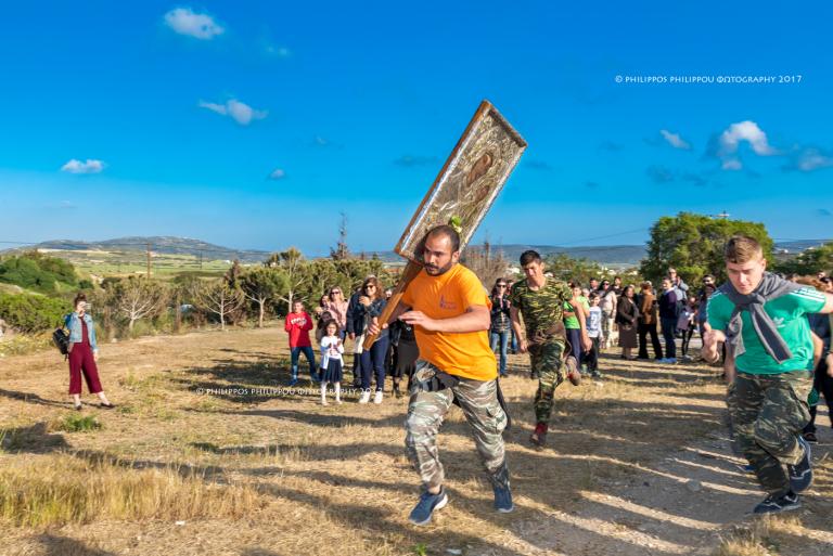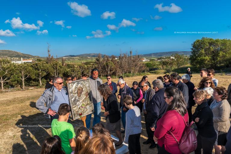 Παναγιά Σκιαδενή -Έθιμα στα χωριά της Νότιας Ρόδου που μεταφέρεται η εικόνα της Παναγιάς Σκιαδενής για λιτανεία. Τρίτη μέρα του Πάσχα, Κατταβιά θέση "Χάλαβρο" 18-4-2017 Μετά την περιφορά της Παναγιάς Σκιαδενής στα "μνήματα" στο κοιμητήριο του χωριού όπου γίνεται τρισάγιο & μοιράζονται γλυκά από τους συγγενείς των εκλιπόντων, μεταφέρεται στη θέση Χάλαβρο και από κει οι νέοι του χωριού τρέχοντας (ανά ομάδες)την μεταφέρουν στους ώμους τους πίσω στη Μονή Σκιάδι. Από εκεί την περιμένουν οι Βατενοί για να την μεταφέρουν και αυτοί στο χωριό τους, κατόπιν την παραλαμβάνουν την Πέμπτη οι Ασκληπενοί, την Παρασκευή οι Γενναδενοί, το Σάββατο οι Λαχανιάτες και την Κυριακλή του Θωμά οι Μεσαναγρενοί. Παμπάλαια έθιμα που διατηρούνται μέχρι σήμερα στα χωριά μας , όταν ήμουν σε μικρή ηλικία θυμάμαι την γιαγιά μου το Ρηνιό από την Λαχανιά να συμμετέχει μετά το πέρας της εκκλησίας στο λεγόμενο "τσίρδισμα" (*) δλδ στην πλειοδοσία της εικόνας όπου όποια οικογένεια έδινε τα περισσότερα χρήματα έπαιρνε και την εικόνα σπίτι της για να ξημερωθεί! Χριστός Ανέστη και του Χρόνου με Υγεία!