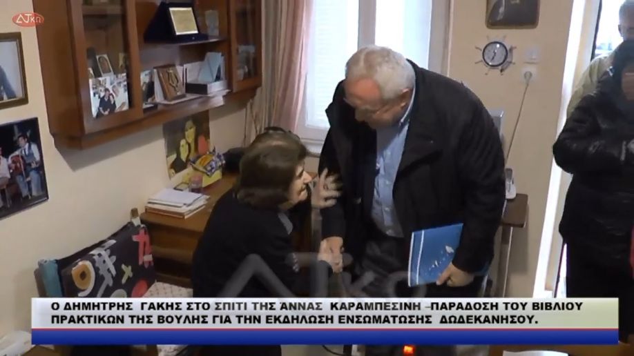 Ο Πρόεδρος της Επιτροπής Περιφερειών Δημήτρης Γάκης, πραγματοποίησε το διήμερο 8-9 Μαρτίου 2017 επίσκεψη στην Κω στο πλαίσιο των δραστηριοτήτων για το έτος Δωδεκανήσου, που με αφετηρία την ειδική συνεδρίαση της Ολομέλειας της Βουλής θα προγραμματιστούν σε κάθε νησί στη Δωδεκάνησο καθ’ όλη τη διάρκεια του 2017. Ο Δημήτρης Γάκης συναντήθηκε με τον Μητροπολίτη Κώου και Νισύρου κ. Ναθαναήλ. Ο βουλευτής Δωδεκανήσου, παραδίδοντας τον Τόμο πρακτικών της εκδήλωσης για την Ενσωμάτωση της Δωδεκανήσου που πραγματοποιήθηκε στις 2.3.16 στην Αίθουσα Γερουσίας του Κοινοβουλίου, ευχαρίστησε τον Σεβασμιώτατο Μητροπολίτη Κώου και Νισύρου για το κοινωνικό του έργο και ζήτησε τη συμβολή του στη διαμόρφωση των δράσεων για το έτος Δωδεκανήσου. Στη διάρκεια της συνάντησης, ανταλλάχθηκαν απόψεις για κοινωνικά και ανθρωπιστικά θέματα σε εγκάρδιο και ευχάριστο κλίμα. Ο Δημήτρης Γάκης στο σπίτι της Άννας Καραμπεσίνη Στη συνέχεια ο πρόεδρος της Επιτροπής Περιφερειών, επισκέφτηκε στην κατοικία της την ερμηνεύτρια και τραγουδοποιό των παραδοσιακών μας τραγουδιών Άννα Σαρρή-Καραμπεσίνη, της οποίας ποίημα για την Ενσωμάτωση της Δωδεκανήσου κοσμεί τον επετειακό Τόμο των πρακτικών. Σε ατμόσφαιρα φορτισμένη από έντονη συγκίνηση ο Δημήτρης Γάκης ευχαρίστησε εκ μέρους της Βουλής των Ελλήνων την Άννα Σαρρή-Καραμπεσίνη για την προσφορά της στην διατήρηση της λαϊκής παράδοσης και της Εθνικής ταυτότητας. Χαρακτήρισε την Άννα Καραμπεσίνη εξέχουσα προσωπικότητα της Δωδεκανήσου, Αγωνίστρια της πατρίδας, με όπλα την πένα και τη φωνή της. Η κυρία Καραμπεσίνη, έντονα συγκινημένη, ευχαρίστησε τον Δημήτρη Γάκη για την τιμή που της έγινε με την φιλοξενία του ποιήματος της στον Τόμο των πρακτικών της συνεδρίασης της Επιτροπής Περιφερειών της Βουλής για την Ενσωμάτωση αλλά και με την επίσκεψη του προέδρου της, βουλευτή Δωδεκανήσου, στο σπίτι της στην Κω και του χάρισε τέσσερα από τα πιο αγαπημένα της ποιήματα. Ακολούθως, ο Δημήτρης Γάκης επισκέφτηκε το Δήμαρχο Κω κ. Γ. Κυρίτση και το Διοικητή του Α.Τ. Κω κ. Δ. Καπανδρίτη, στους οποίους παρέδωσε τον επετειακό Τόμο πρακτικών της ειδικής εκδήλωσης για την Ενσωμάτωση της Δωδεκανήσου. Στη συνάντηση του βουλευτή Δωδεκανήσου με το Δήμαρχο Κω, συζητήθηκε το θέμα της διεκδίκησης και απόδοσης από την Πολιτεία στο λαό της Κω του κτήματος της πρώην Διοίκησης 80 ΑΔΤΕ για την δημιουργία Μουσείου Νεώτερης Ιστορίας της Κω. Τέλος, ο βουλευτής Δωδεκανήσου έδωσε συνέντευξη σε τοπικό ραδιοσταθμό για θέματα που αφορούν τις δράσεις του Έτους Δωδεκανήσου και μίλησε ευρύτερα, για τα σημαντικά αναπτυξιακά και επίκαιρα κοινωνικά θέματα που απασχολούν τη Δωδεκάνησο. Στη συζήτηση, ο Δ. Γάκης αναφέρθηκε στην πορεία των διαπραγματεύσεων για την ολοκλήρωση της αξιολόγησης και επεσήμανε τις δυνατότητες που αποκτά η ελληνική οικονομία μετά την λήξη του Προγράμματος το 2018. Για το έτος Δωδεκανήσου, ο βουλευτής είπε χαρακτηριστικά, ότι «αποτελεί μια πρώτης τάξεως ευκαιρία για να αναδείξουμε τις δυνατότητες κάθε νησιού ξεχωριστά, να προβάλουμε την εθνική σημασία, το ρόλο και τη μελλοντική προοπτική της Δωδεκανήσου». Το ΓΡΑΦΕΙΟ ΤΥΠΟΥ ΦΩΤΟ-http://www.dhras.gr/%CF%80%CE%BF%CE%BB%CE%B9%CF%84%CE%B9%CF%83%CE%BC%CF%8C%CF%82/item/14347-o-%CE%B4%CE%B7%CE%BC%CE%B7%CF%84%CF%81%CE%B7%CF%83-%CE%B3%CE%B1%CE%BA%CE%B7%CF%83-%CF%83%CF%84%CE%BF-%CF%83%CF%80%CE%B9%CF%84%CE%B9-%CF%84%CE%B7%CF%83-%CE%AC%CE%BD%CE%BD%CE%B1%CF%83-%CE%BA%CE%B1%CF%81%CE%B1%CE%BC%CF%80%CE%B5%CF%83%CE%B9%CE%BD%CE%B7-%E2%80%93%CF%80%CE%B1%CF%81%CE%B1%CE%B4%CE%BF%CF%83%CE%B7-%CF%84
