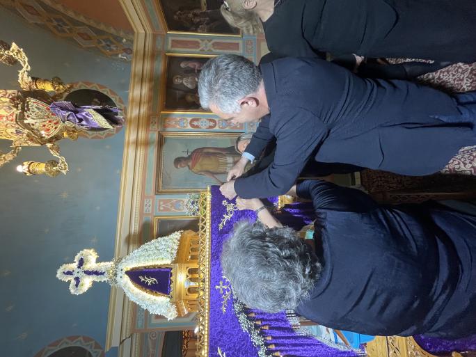 Επιστρέφοντας στη Ρόδο παρακολούθησε τα Εγκώμια και την Περιφορά του Επιταφίου στον Ευαγγελισμό της Ρόδου.